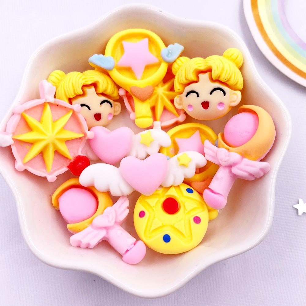 Painted Resin Kawaii Colorful Fairy Magic Stick Flatback Stone Scrapbook Figurines 10PCS DIY Bow Decor Accessories Crafts