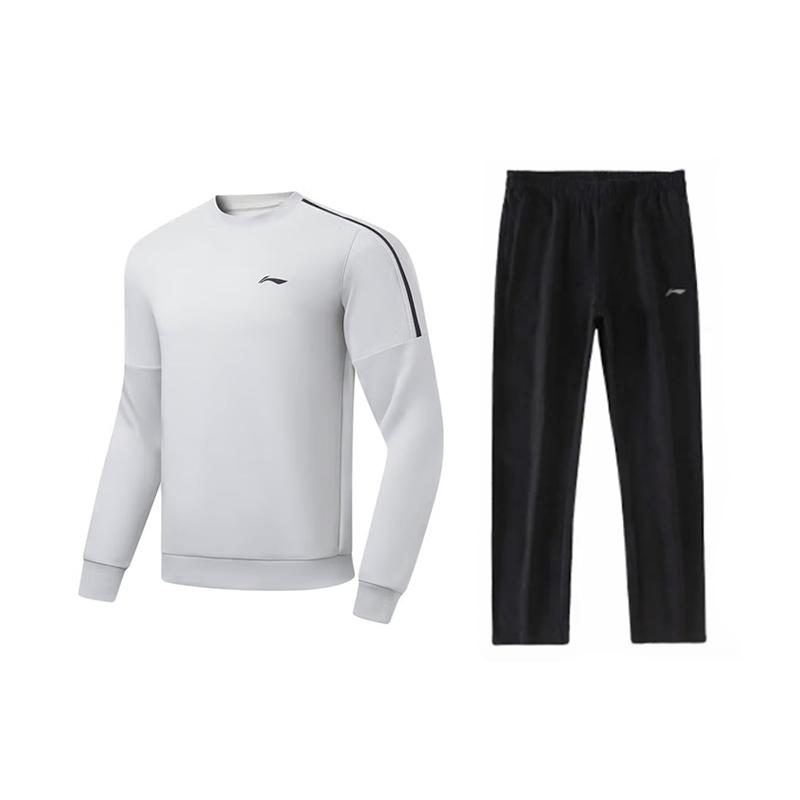 Li Ning Logo Print Spliced Comfortable Skin-Friendly Breathable Round Neck Pullover Long Sleeve Sweatshirt Casual Sports Set AWDU95-2-AKL81-1