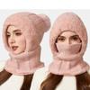 One-Piece Knitted Hat Women's Autumn Winter Thick Hat Scarf Mask One-Piece Wool Hat Cycling Windproof Warm Hat