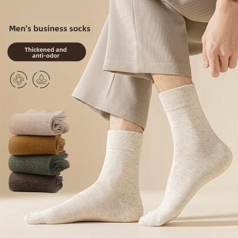 Solid-colored Cotton Socks for Autumn and Winter, Mid-calf Socks, Anti-odor and Sweat-absorbing Men's Socks, Long Calf Cotton Socks