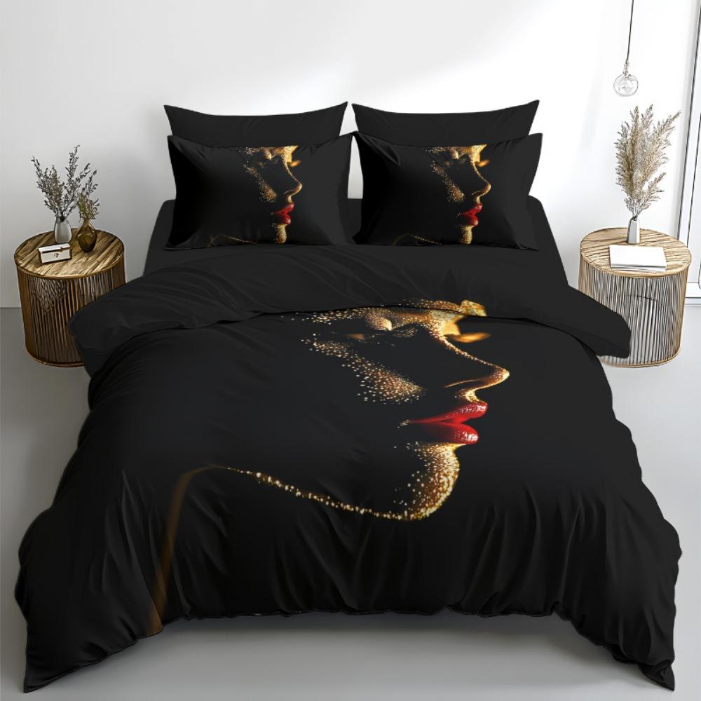3pcs Black Bedding Set Beautiful Red Lips Printed Cozy Duvet Cover Set King Queen Twin Single Size Birthday Gift Bedroom Decor