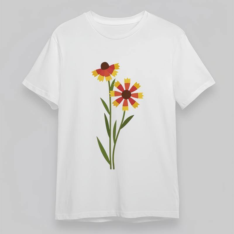 Women's Oversize Trend Colorful Classic T-Shirt Red And Yellow Flower Cotton Tee
