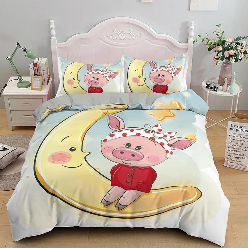 Cartoon Lovely Pig Comfortable Duvet Quilt Cover Pillowcase Bedding Set Children Bedroom Decoration Home Textile