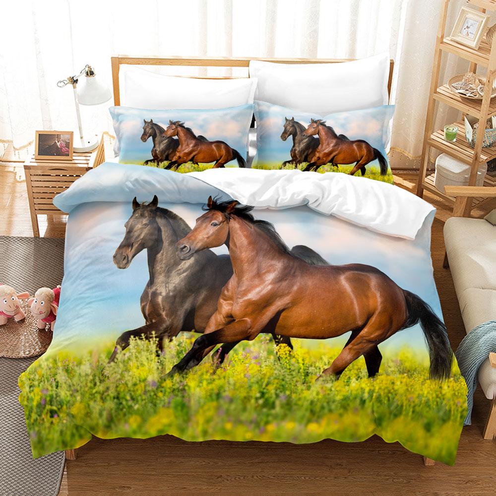 3D Horse Printing Duvet Cover Animal Bedding Set Twin Full Double Queen King Size for Teens Soft Polyester Comforter Cover