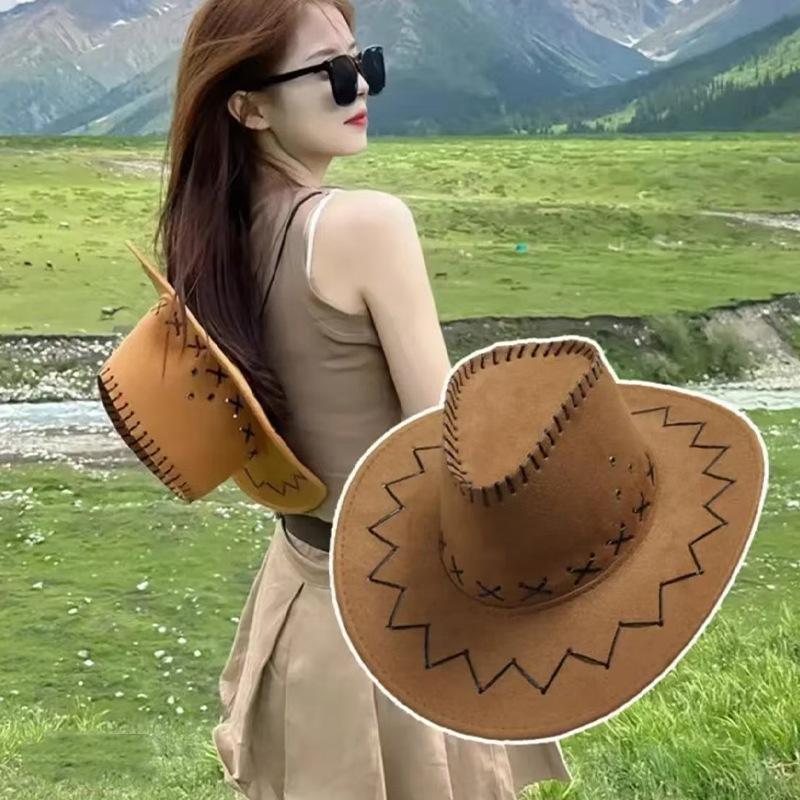 1Pieces Women Men Cowboy Hat Western Suede Cowgirl Hats Fashion West Fancy Dress Party Headwear Unisex Cap Mountaineering Scarf