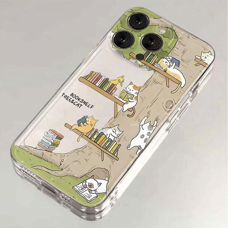 Tree Cat Reading Book Full Coverage Case for iPhone 16Pro Max/15/14/13/12/11, Drop-Proof Xsm