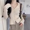 Temperament Slim-fit Plo Lapel-neck Knitted Cardigan Women's Autumn and Winter Chic Collar Sweater Bottoming Shirt with Long-sleeved Top Inside