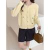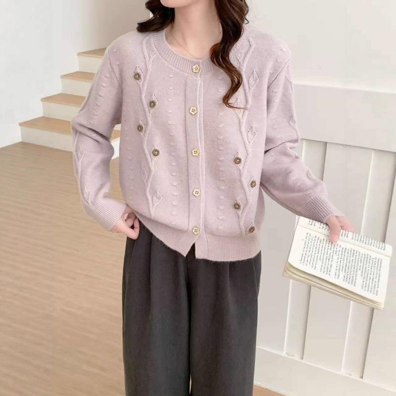 Casual Versatile Loose Fashion Temperament Knitted Sweater Embroidered Flower Single-row Multi-button Crew Neck Autumn and Winter Sweater