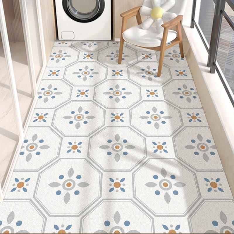 PVC Balcony Mat Geometric Print Kitchen Floor Mats Waterproof Non-slip Rug Leather Soft Wear-resistant Carpet Home Decor