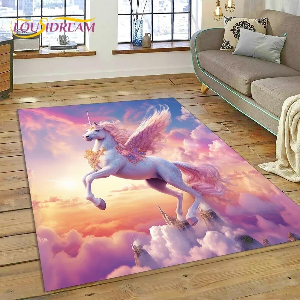 3D Cute Dream Unicorn Cartoon Girl Carpet Rug for Bedroom Living Room Home Sofa Decoration,Children Game Large Decor Floor Mat