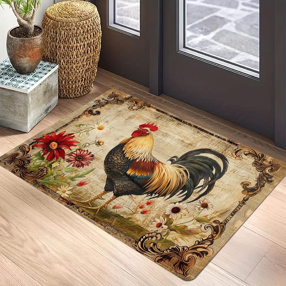 Retro Rooster Print Doormat Anti-Slip Entryway Rug Washable Bedroom Kitchen Bath Mat Polyester Home Decor Carpet