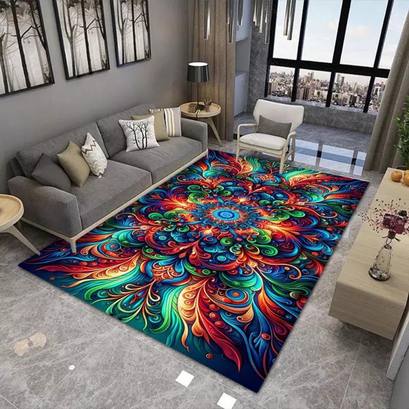 Vibrant Mandala Carpet Mat Rug Evil Eye Geometric Pattern Bohemian Abstract Design Modern Living Room Home Decor Soft Floor Mat