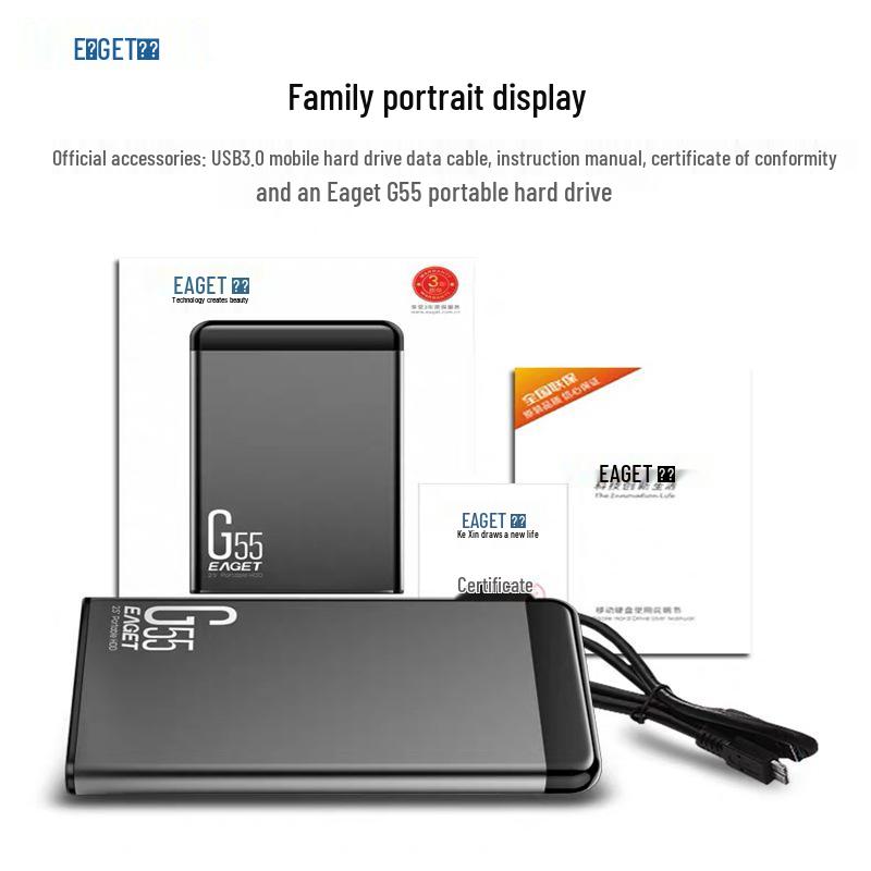 Eaget G55 2.5-inch Portable External Hard Drive, 1TB High-Speed USB 3.0 for Computer & Mobile Phone