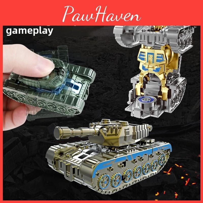 This transforming tank and robot finger spinner toy features durable plastic construction and measures approximately 7.5*6*4.5cm in diameter. Designed to enhance visual sensory perception, hand-eye coordination, and fine motor skills, it provides engaging entertainment. Ideal for children during playtime or travel, its easy to clean with a damp cloth.