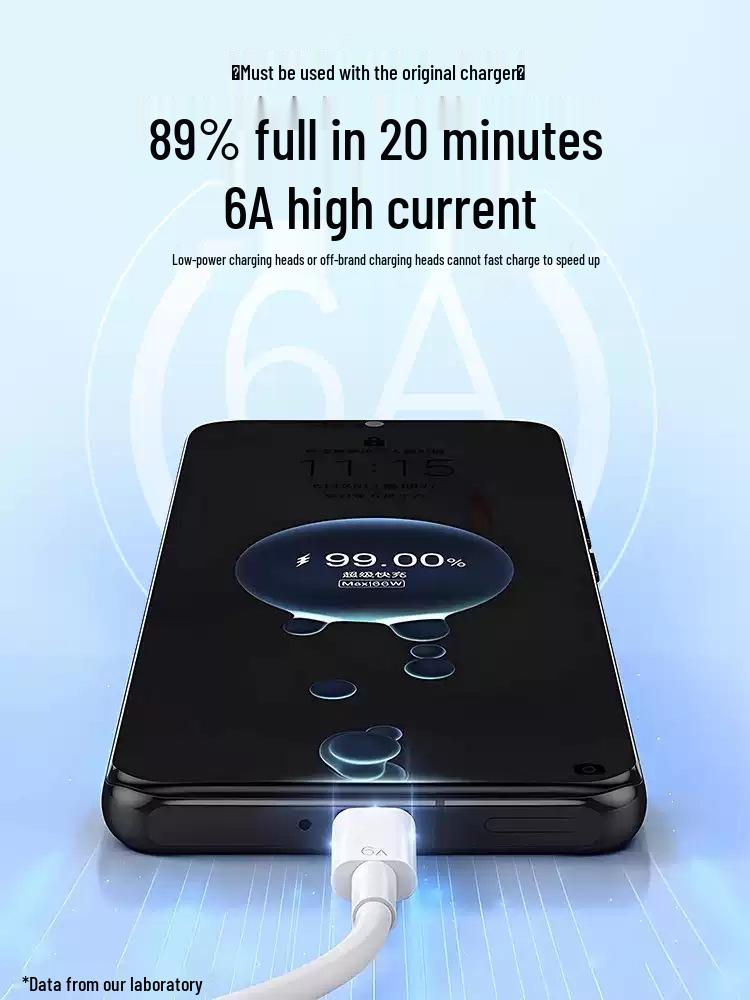 6A Fast Charge USB Type-C Cable for Huawei, Xiaomi, Redmi, Vivo, Honor