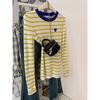 Yellow Love Striped Knitted Long-sleeved T-shirt Women's Early Spring Design Sense Niche Slim-fitting Front Shoulder Top Small Man