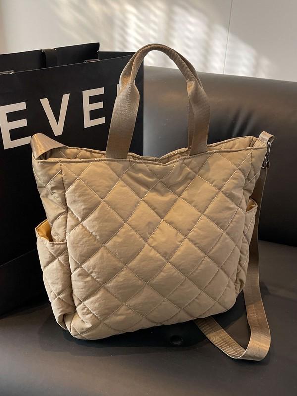 Large Capacity Quilted Tote Bag - Korean Style Versatile Cotton Coat Bag, High-End Fashion Shoulder & Crossbody Bag for Autumn and Winter