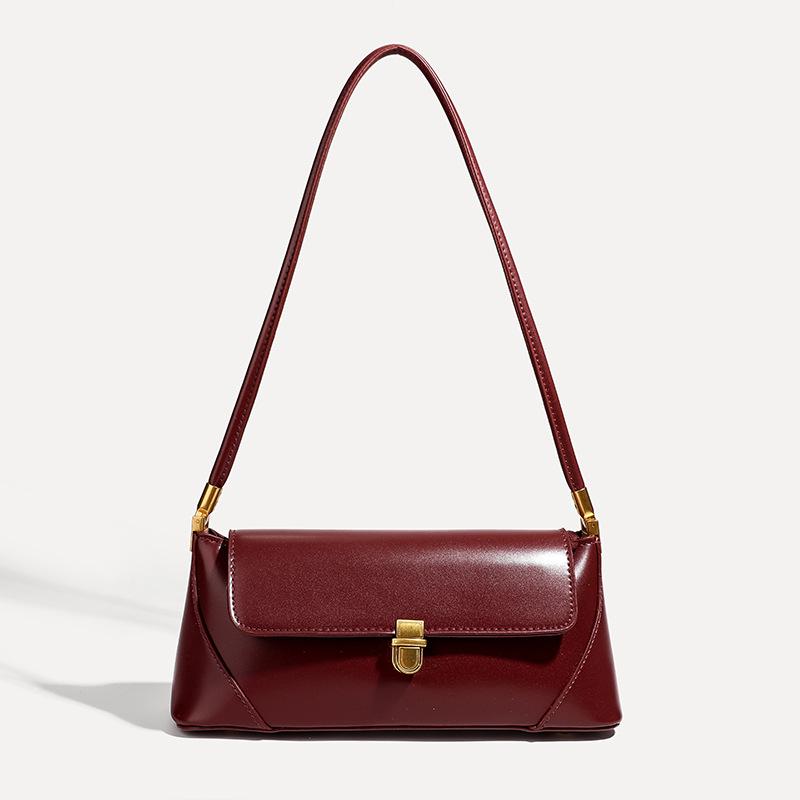 Retro Burgundy Deerskin Velvet Women's Shoulder Bag - Autumn/Winter Collection