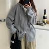 Hooded Double Zip Sweater Jacket Women's Loose Chunky Knit Cardigan