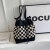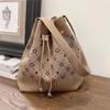 Korean Style Knit Shoulder Bag with Drawstring & Magnetic Snap - Versatile, Large Capacity Tote for Women