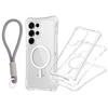For Samsung S25 Ultra Magnetic Transparent Triple-Function Phone Case with Wrist Strap