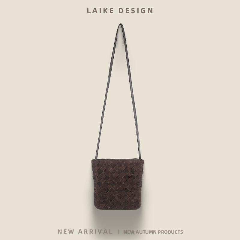 Women's Genuine Leather Woven Crossbody Bucket Bag