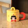 Cute Happy Girl Mug Candy Color Girl Ceramic Cup with Lid Cup Couple Household Milk Breakfast Cup