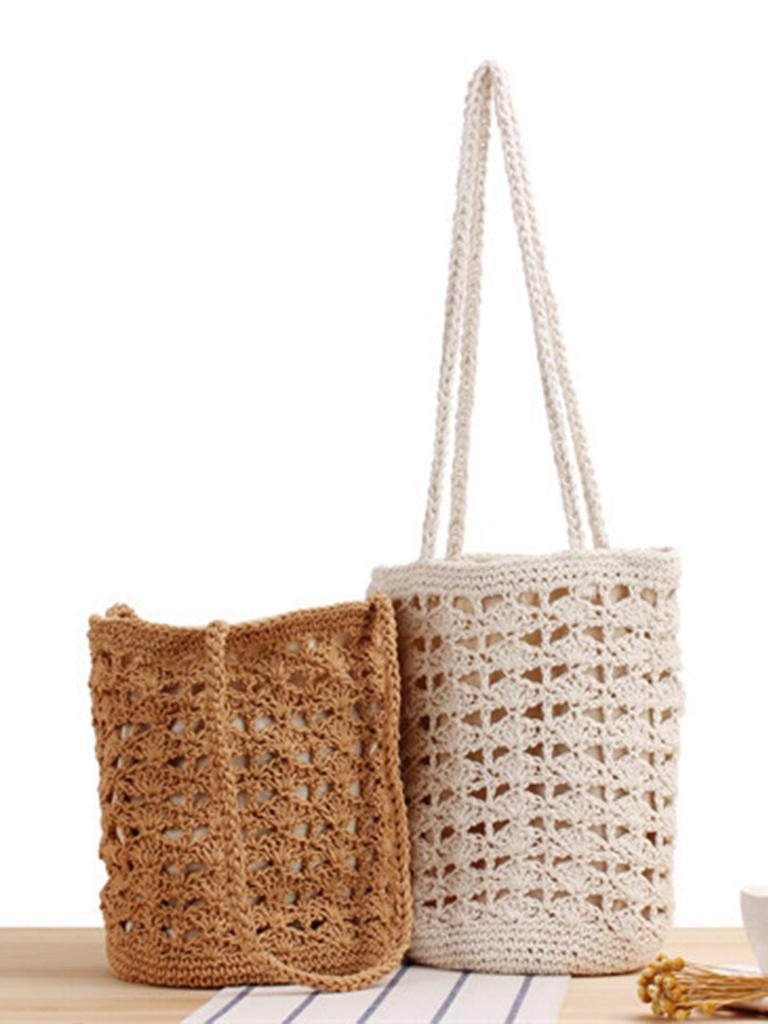 Versatile Hollow Cotton Rope Woven Bag for Seaside Vacations and Daily Commutes