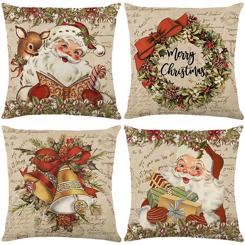 1pc Christmas Cushion Cover Wreath Santa Claus Washable Cover 2025 New for Home Ornament Xmas New Year Christmas Decoration
