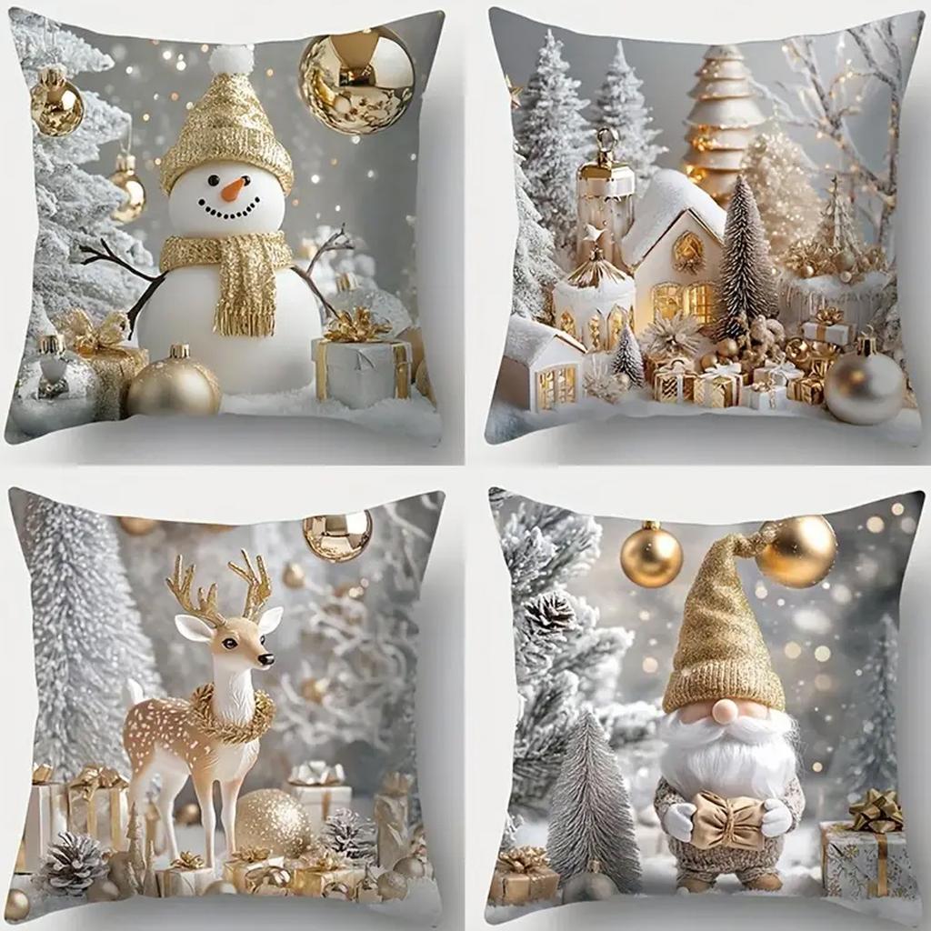 1pc White Golden Christmas Cushion Cover Snowman Dwarf Printed Durable Cover 2025 New for Home Ornament Xmas New Year Decoration