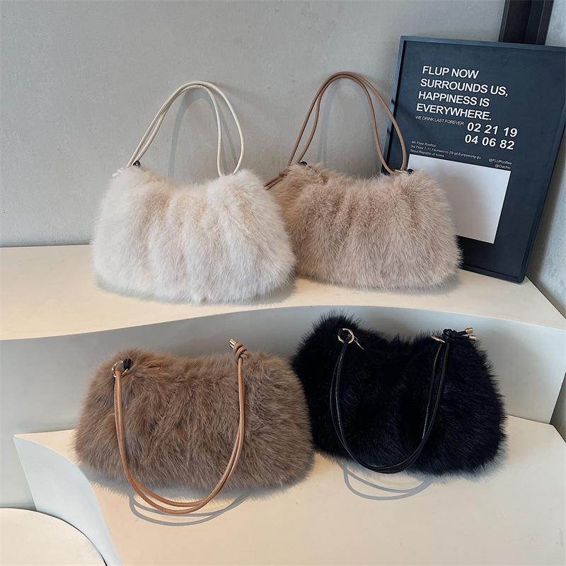 Women's Large Capacity Plush Shoulder Bag - Furry Handbag for Autumn/Winter