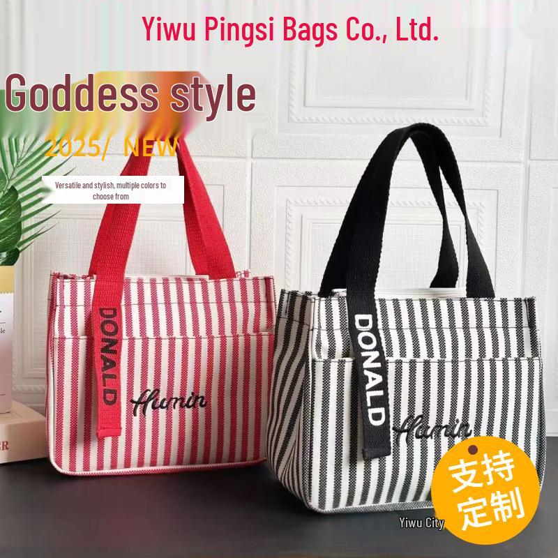 Striped Canvas Tote Bag with Zippered Outer Pocket – Versatile, Large-Capacity Bag for Women As Lunch, Mummy, or Work Bag