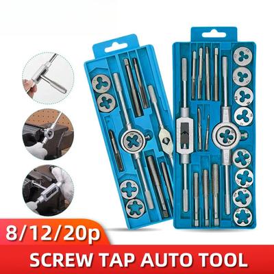 Multi-specification 8/12/20Pcs Multifunction Metric Hand Tap and Die Set M3-M12 Screw Thread Plugs Straight Taper Reamer Tools