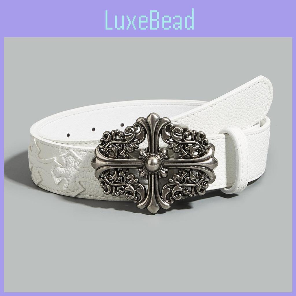This men's punk cross flower designer belt features a durable PU leather strap, with a metal alloy buckle and studded accents. The belt showcases a bold cross flower motif enhanced by studded details and electroplated finishing, offering a distinctive edgy look. Suitable for casual wear, it complements street fashion and alternative styles. The belt is adjustable with a snap button closure and comes individually packaged. Easy to maintain, wipe clean with a damp cloth to preserve its finish.