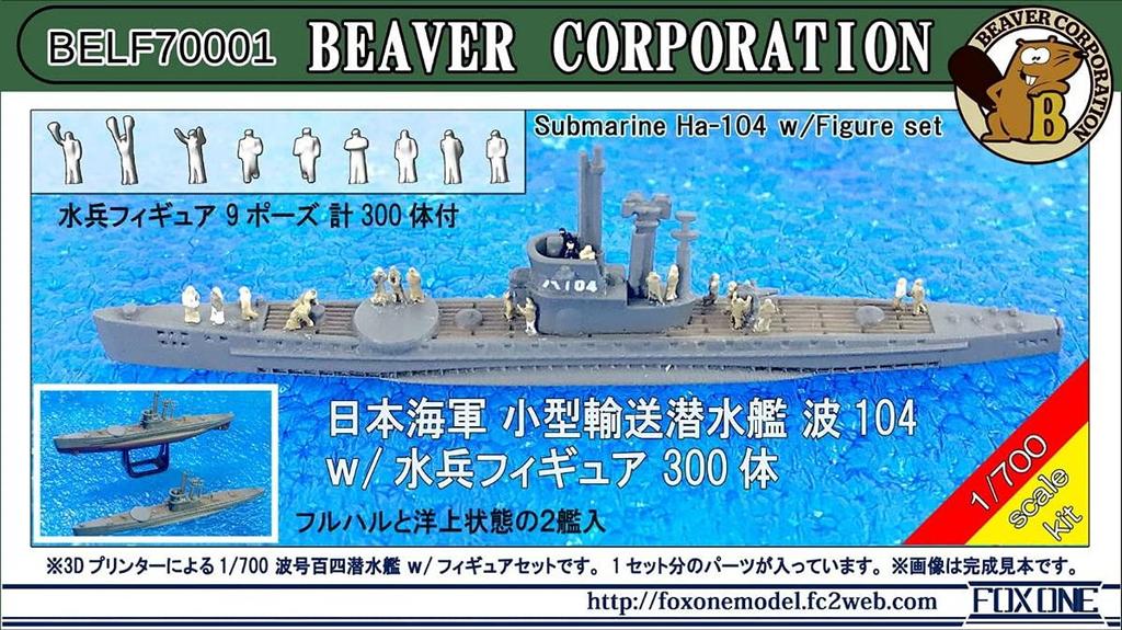 Beaver Corporation's "1/700 Japanese Navy Small Transport Submarine Nami 104 with 300 Sailor Figures" 3D-printed kit.