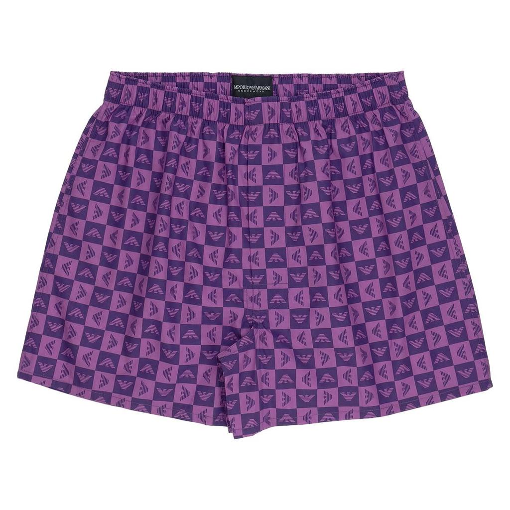 Emporio Armani Checkered Eagle Cotton Woven Trunks (M/L), Front-Opening, Men's Underwear, Size M (Japanese Size), 54250001, Purple, Size 73