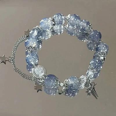 Star Chain Tassel Bracelet for Women Fantasy Blue Crystal Beads Elastic Rope Bracelet Best Friend Jewelry Gifts