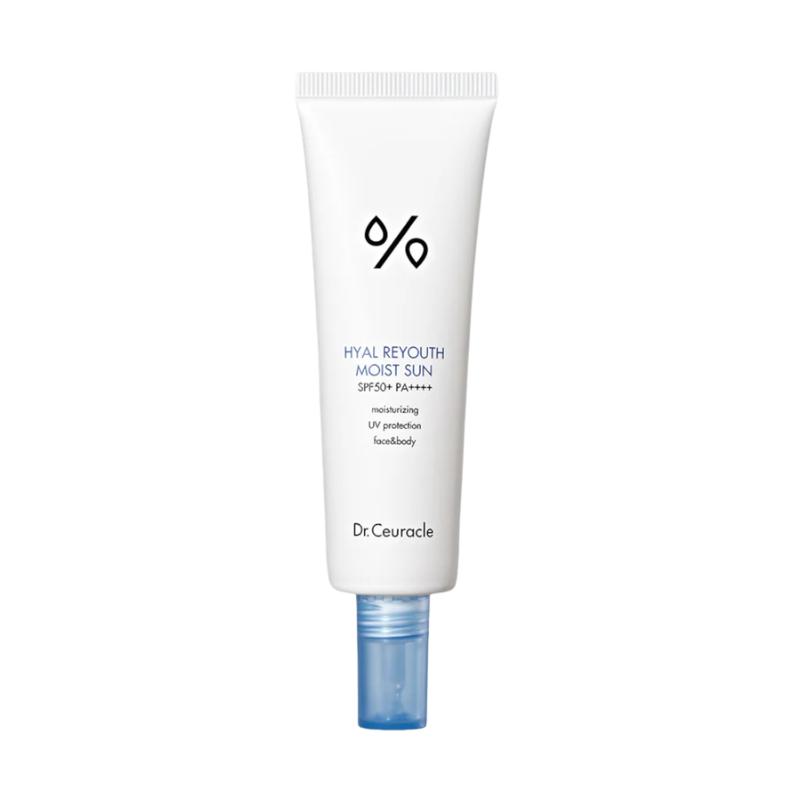 Dr.Ceuracle Hyal Reyouth Moist Sun SPF50+/PA++++ is a highly moisturizing Korean sunscreen that combines strong UV protection with skincare-level hydration.