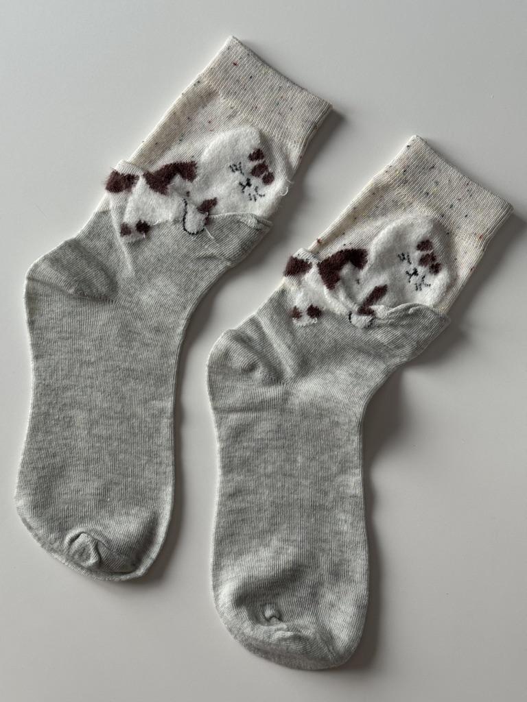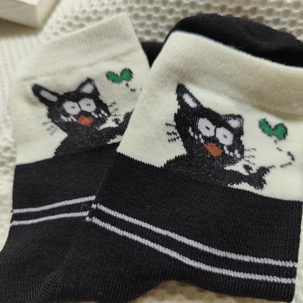 Cute Creative Designed Flocked Cat-themed Mid-calf Socks for Women Autumn and Winter Women Socks