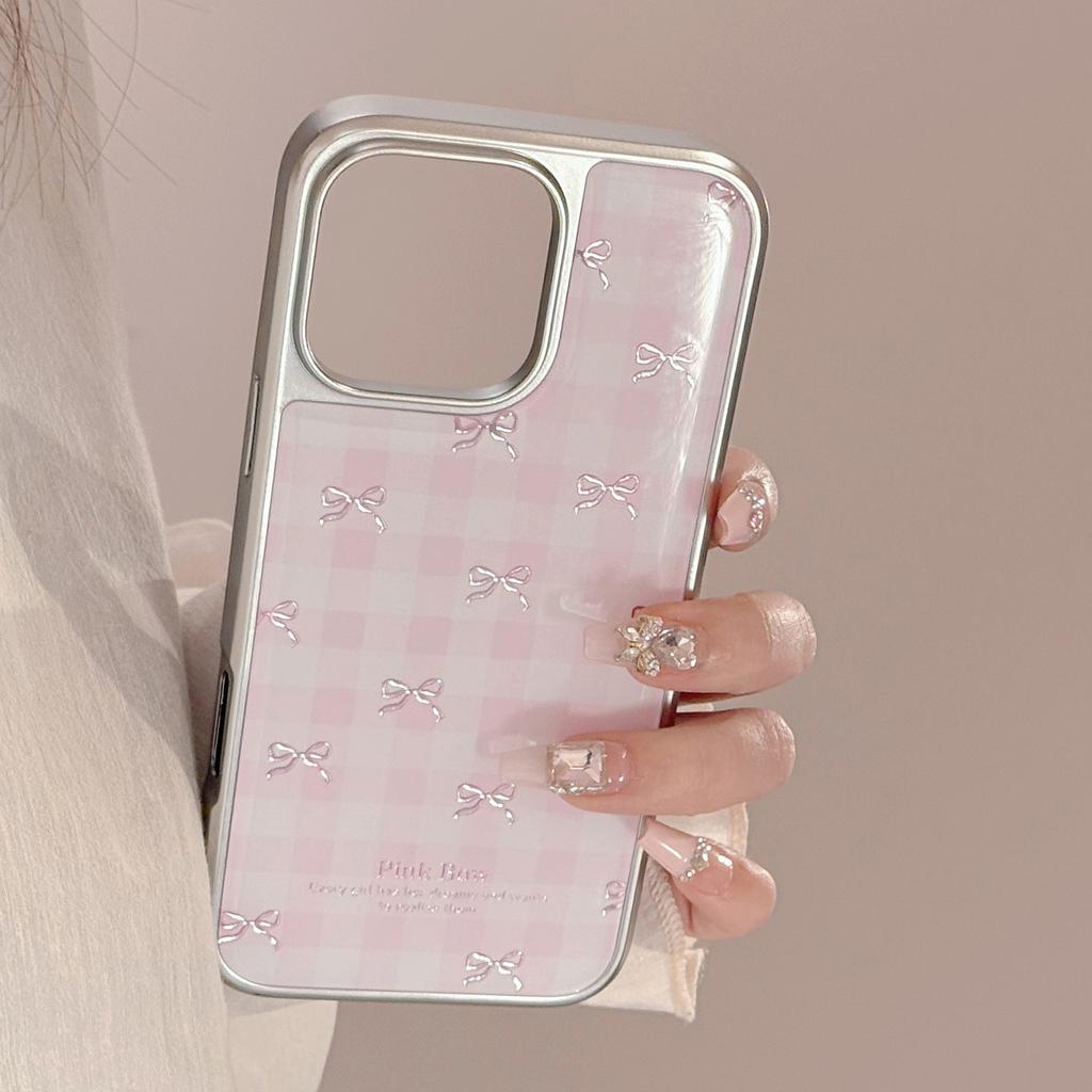 Gilded for Apple 17promax Phone Case for IPhone 16 Pink Grid Bow 13 Plated 14 Hard for Huawei