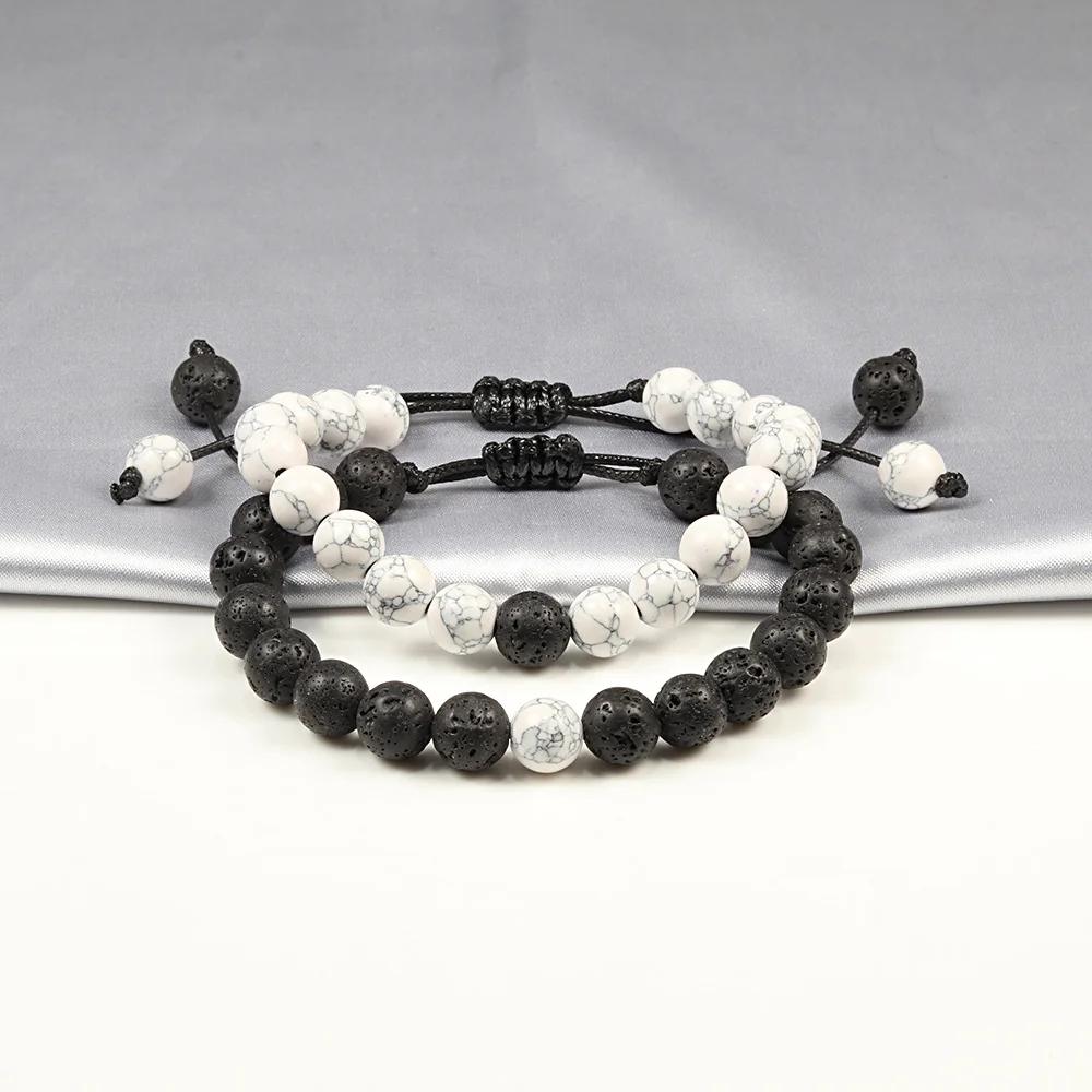 Hot 2pcs/Set Couples Distance Braid Bracelets Natural Stone White And Black Ying Yang Beads Bracelet Best Friend Strand Jewelry