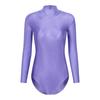 Womens Mock Neck Bodysuit Long Sleeve Leotard Solid Color Zipper Back Stretchy Gymnastics Dance Practice Wear