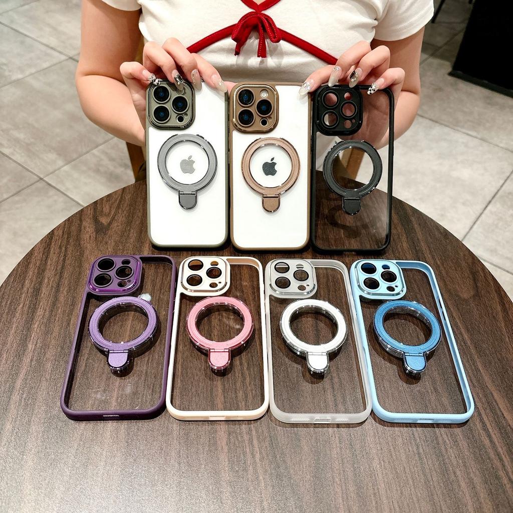For IPhone 16 Promax Phone Case Gold Shield Protective Mirror for Apple 15 Metal Magnetic Pivot Bracket 14