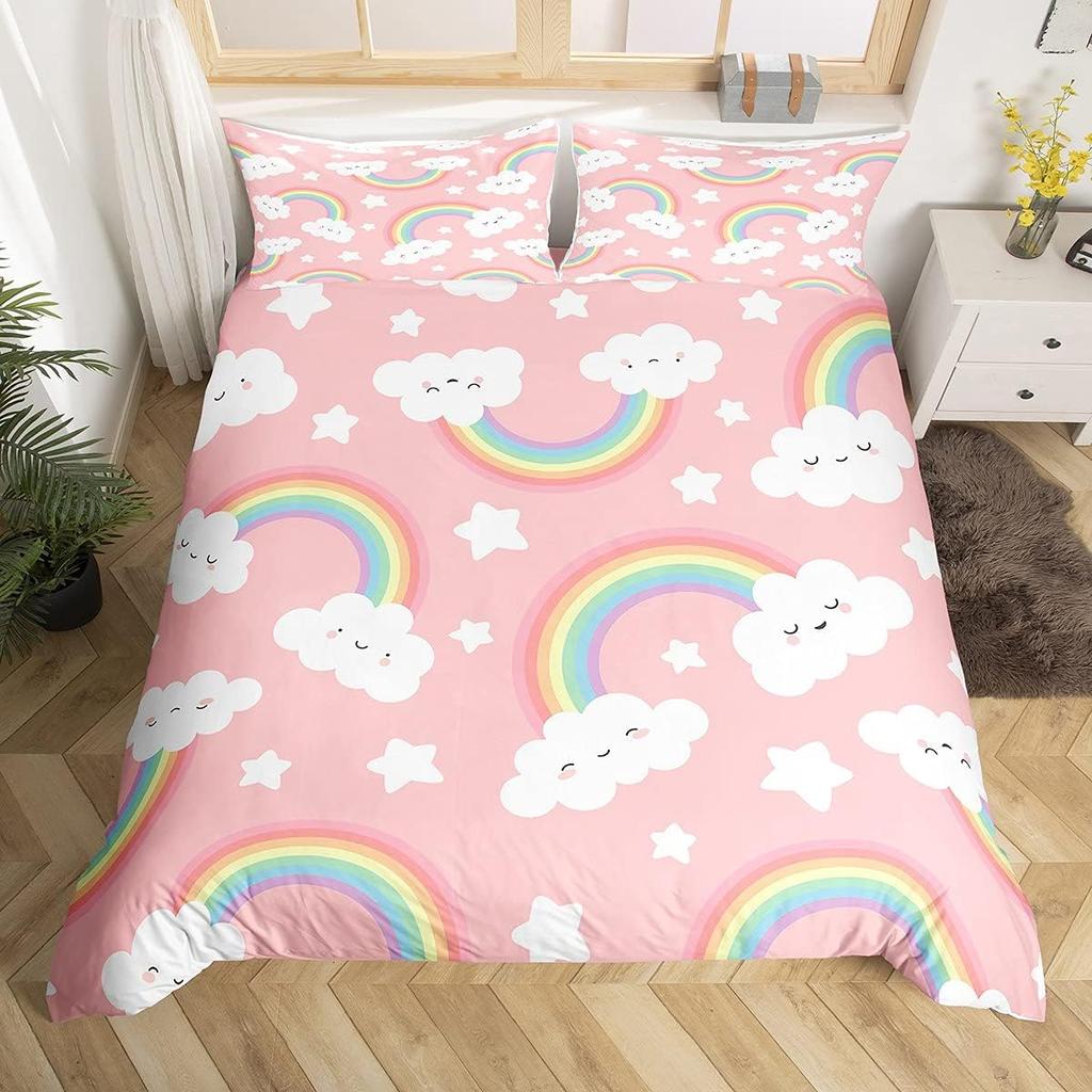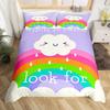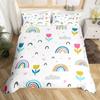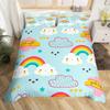 Kawaii Rainbow Duvet Cover Cartoon Iridescent Print Bedding Set For Girls Kids Room Twin,Cute Stars Clouds Decor Comforter Cover