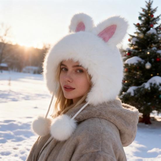 The thick plush lining and ear flaps provide extra warmth and protection during outdoor activities, ensuring comfort in chilly conditions. Featuring playful furry ears and tail details, this hat adds a fun, fashionable touch to any winter outfit.