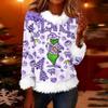 Women's Fashionable Christmas Printed Round Neck Long Sleeved Casual Pullover T-shirt Top