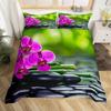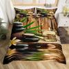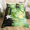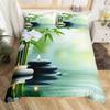 Zen Stones Duvet Cover Green Bamboo Fountain Bedding Set,Twin King,Spa Still Life Comforter Cover Natural Meditation Quilt Cover