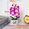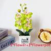 This artificial orchid potted plant features lifelike silk flowers crafted with injection-molded techniques, offering a realistic appearance. It measures approximately 11.4 inches tall , making it lightweight and easy to place. The product is available in red, white, green, and purple with a decorative "love" pot design.
