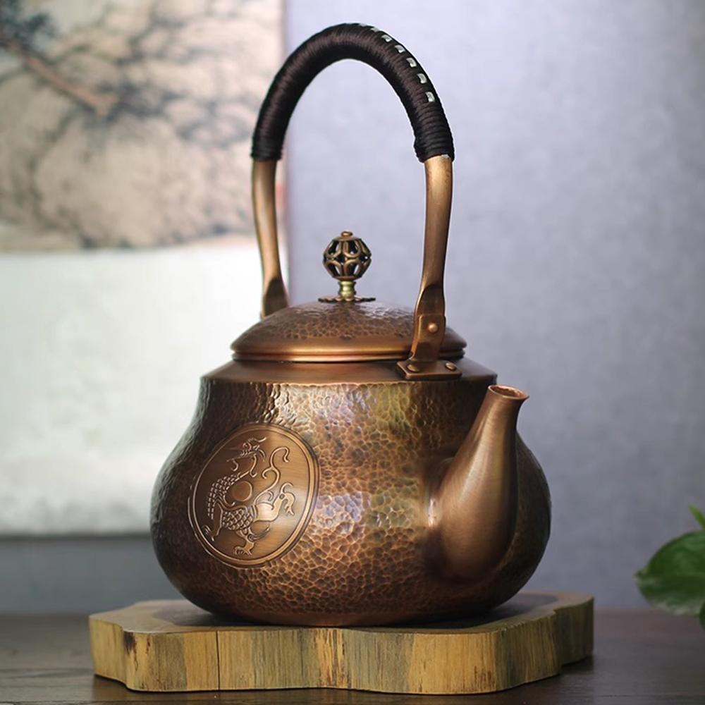 Pear Shaped Red Copper Teapot, Handmade Hammered Copper Teakettle, Around the Stove Boiling Tea Pot, Kung Fu Health Tea Set,1.5L