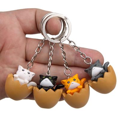 Lovely Cartoon Egg Shell Cat Key Rings Chains Pendant Ornament Bag Car Keychain